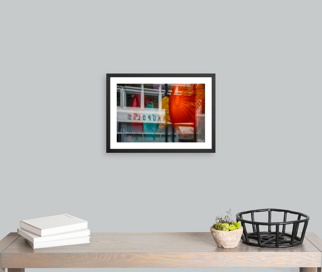 Framed: Art Dimensions 18 × 12 inches, Exterior: 217⁄8 × 157⁄8 inches, Gallery Black Frame - Single Mat, archival fine art giclee luster print, framed and mounted, 99% UV acrylic (filters 99% of UV rays), back is sealed with wire hanging hardware.
