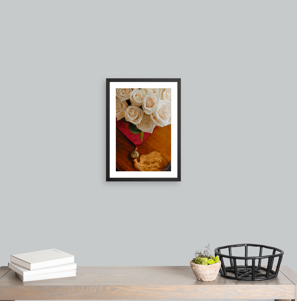 Framed: Art Dimensions 12 × 18 inches, Exterior: 157⁄8 × 217⁄8 inches, Gallery Black Frame - Single Mat, archival fine art giclee luster print, framed and mounted, 99% UV acrylic (filters 99% of UV rays), back is sealed with wire hanging hardware.